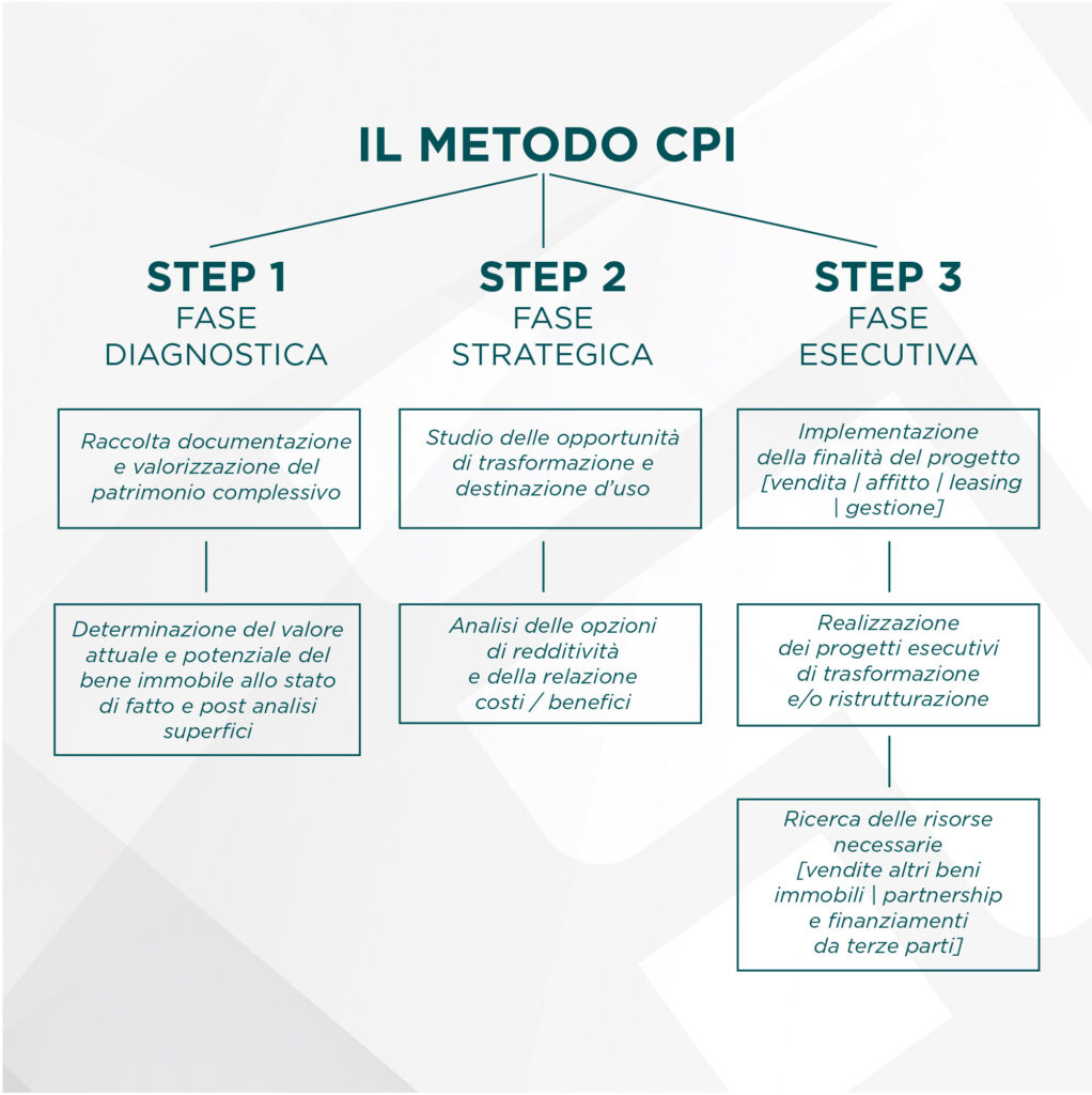 Il metodo CPI si articola in tre fasi di lavoro tra loro indipendenti per ognuna delle quali viene formalizzato uno specifico incarico e il relativo preventivo
